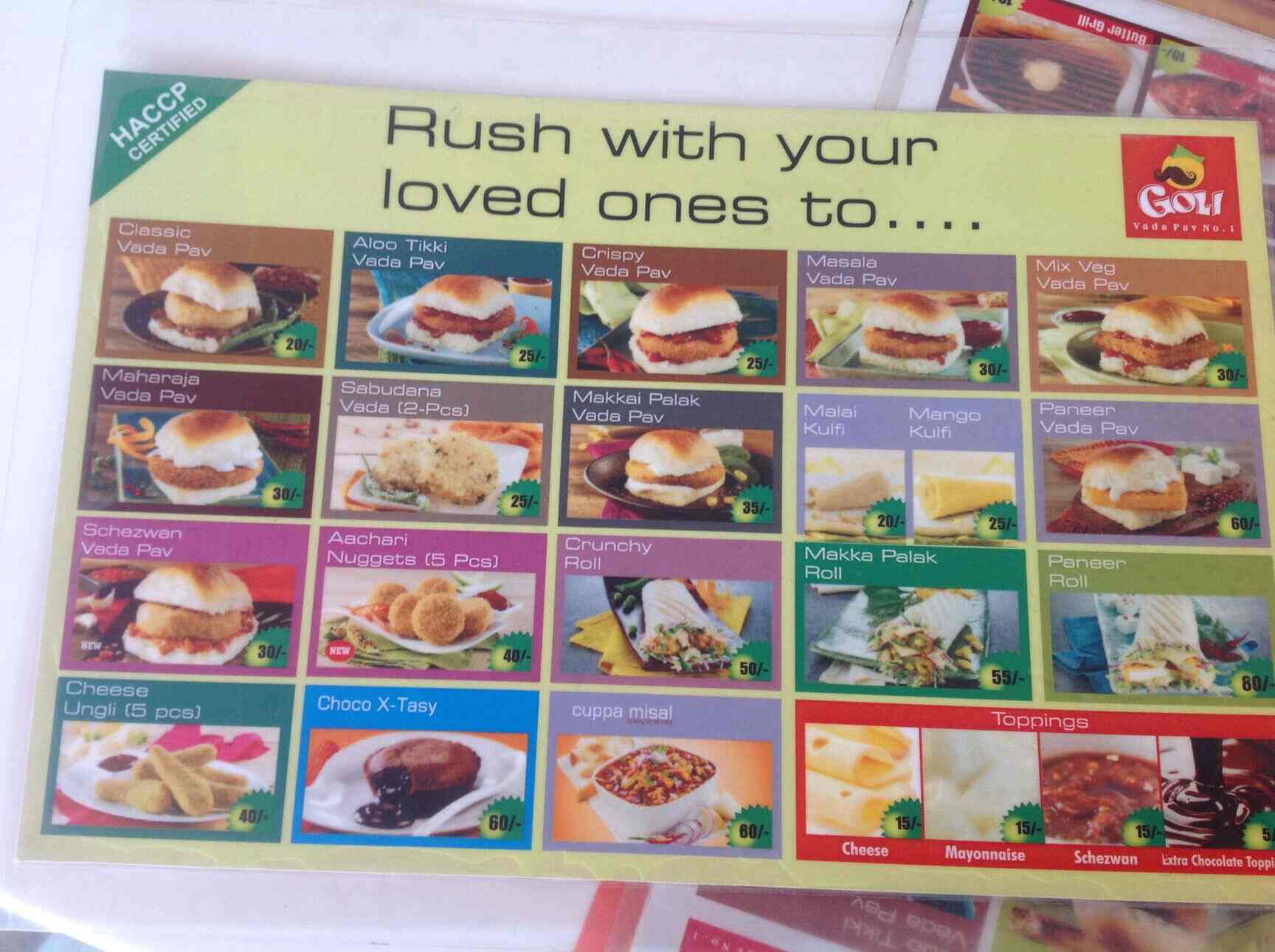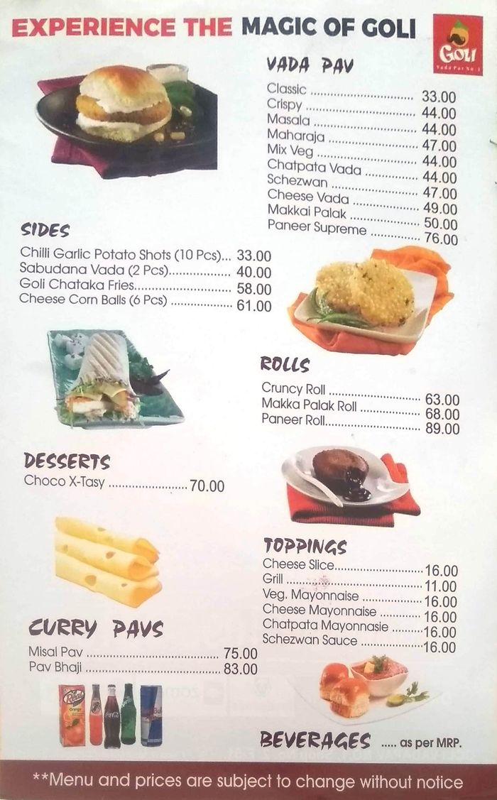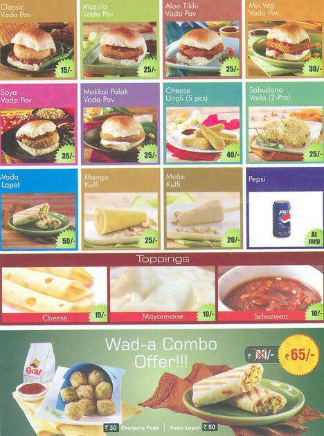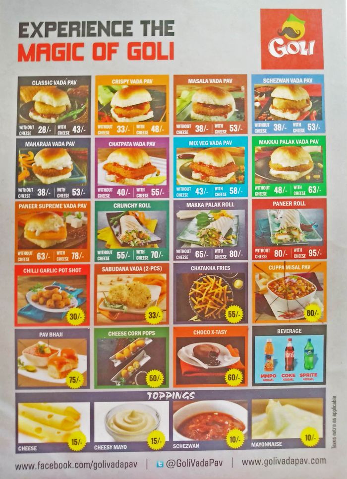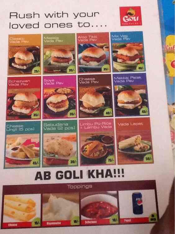 Goli Vadapav Menu : Spicy potato filling is sandwiched between burger buns and layered with spicy chutney!